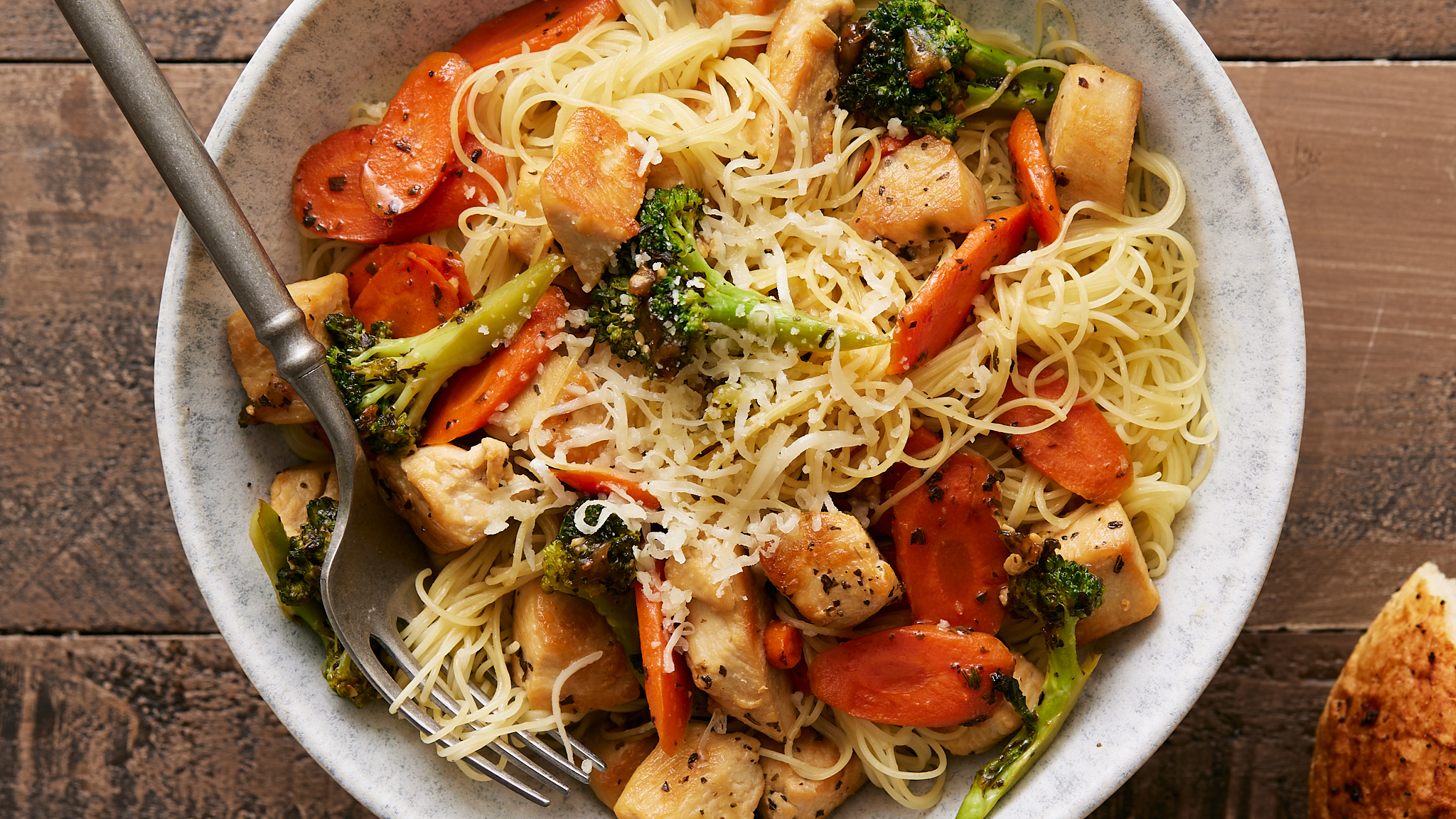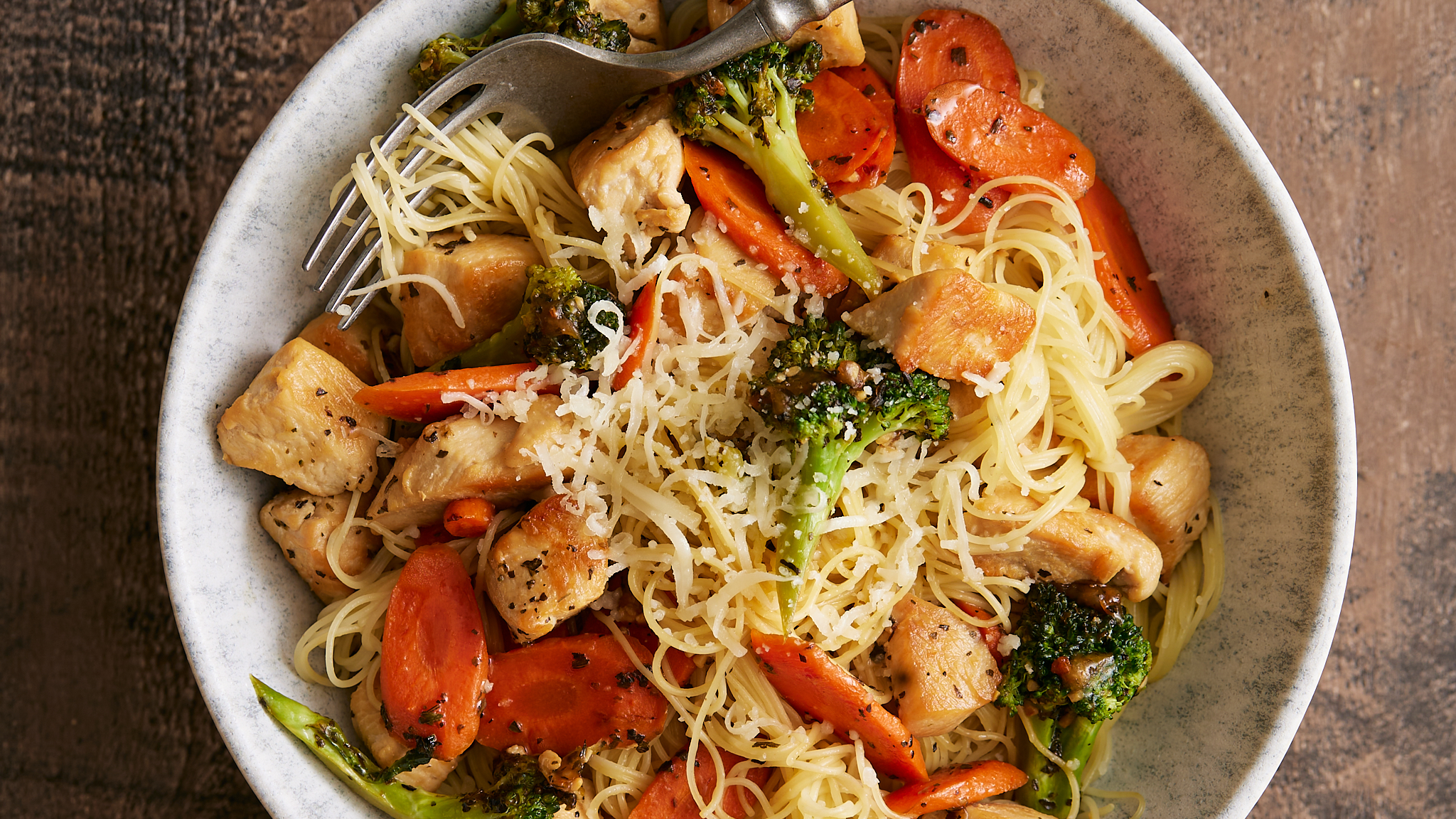 The ethereal pasta of Angel Hair Chicken Pasta is a surprisingly solid platform for a lovely dinner. Topped with savory chicken, bright carrots, fresh broccoli, and an umami-packed and herbaceous chicken sauce, Angel Hair Chicken Pasta is (dare we say it?) a heavenly experience. Plus, it's ready in only 20 minutes, which (when you're in a rush) certainly feels like a little divine intervention!