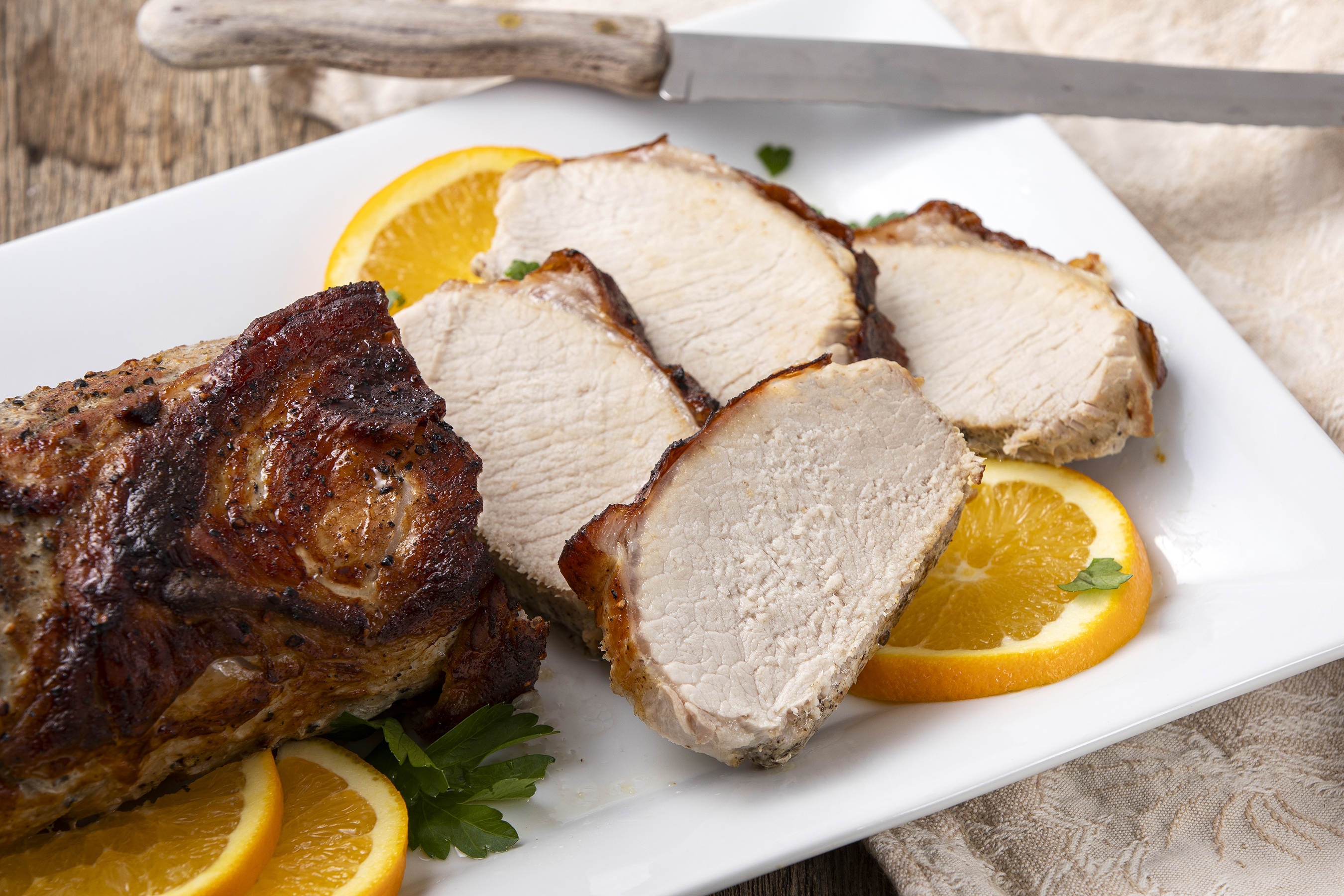 Step 8 -Slice the pork, garnish with the orange slices and the parsley, and serve.