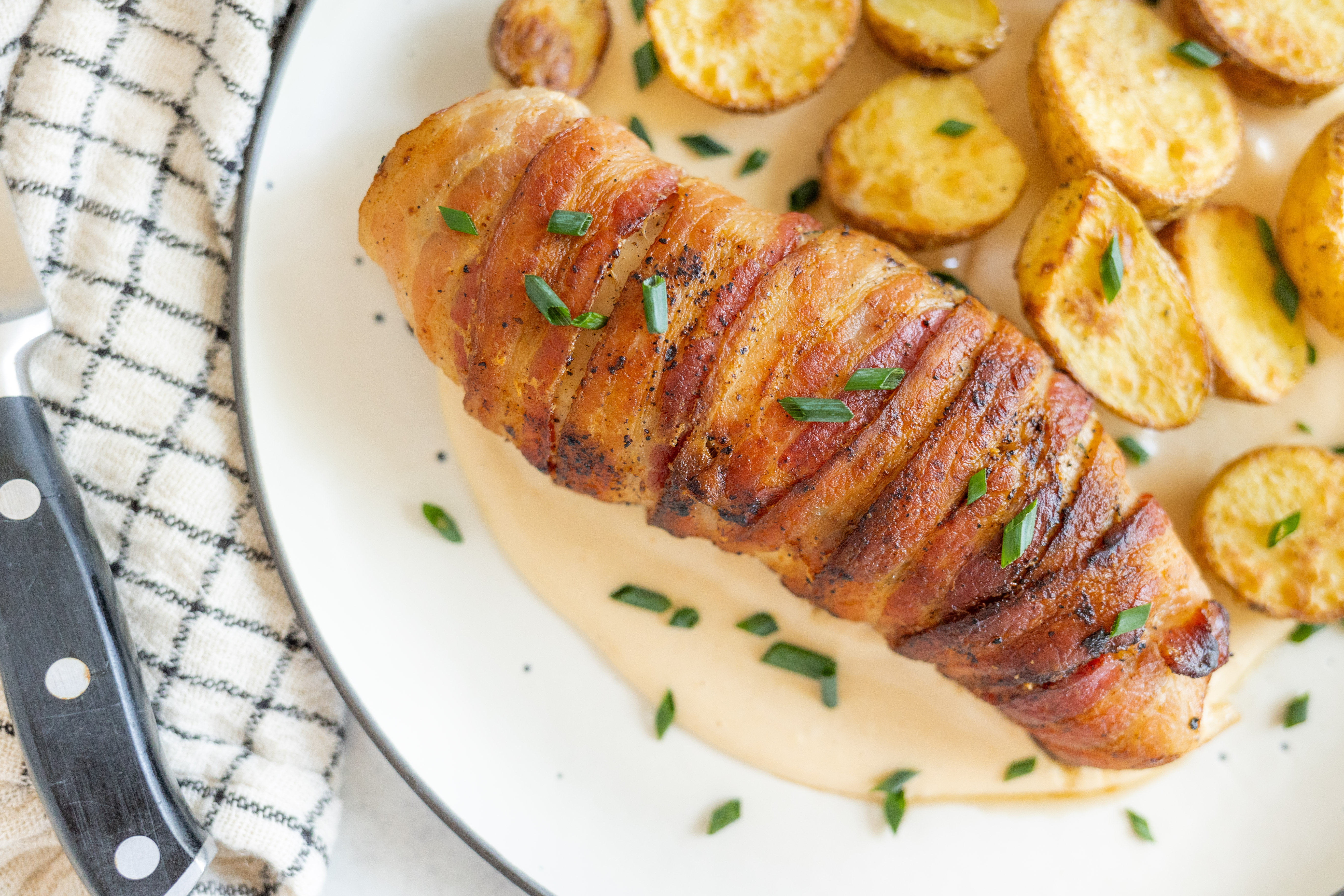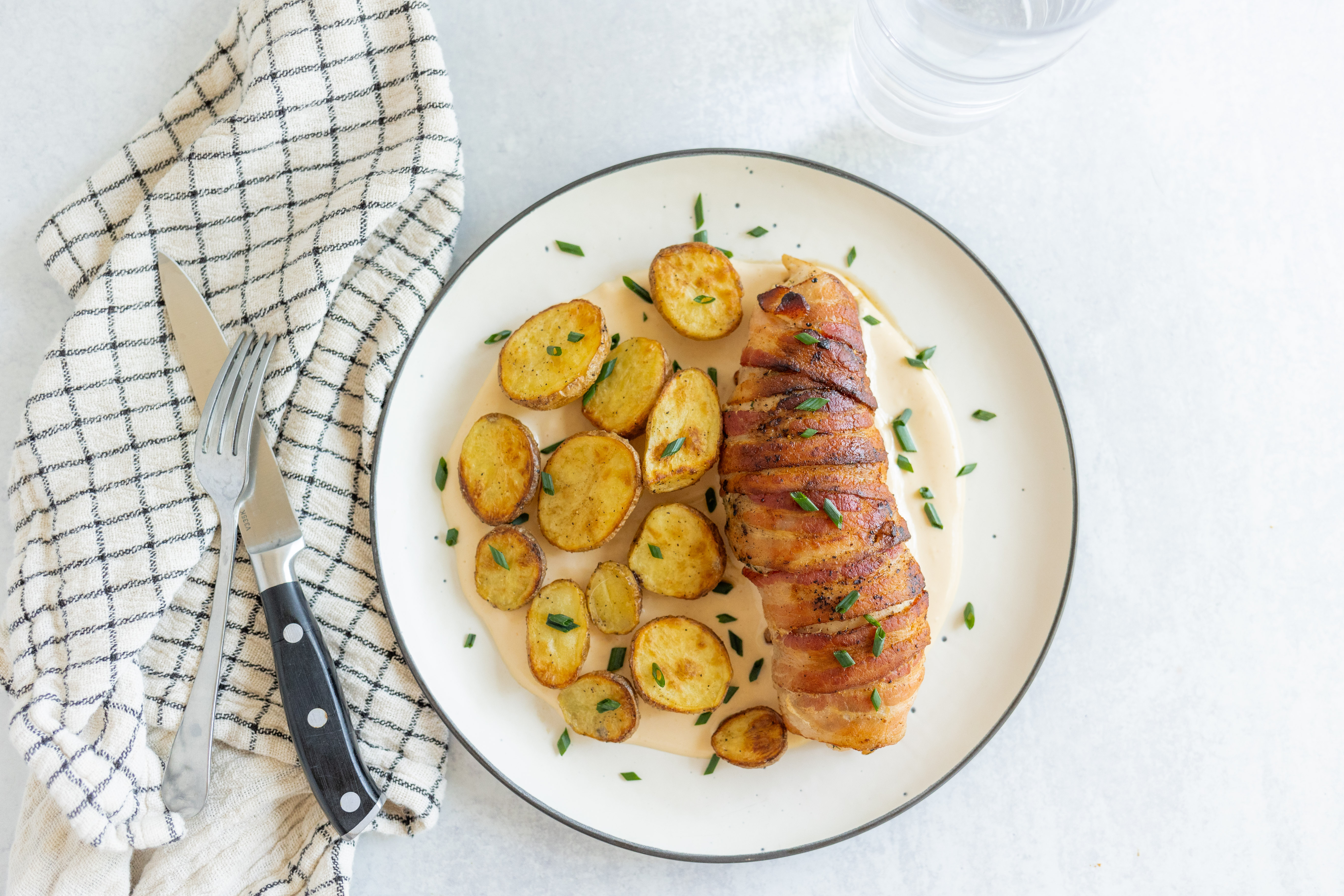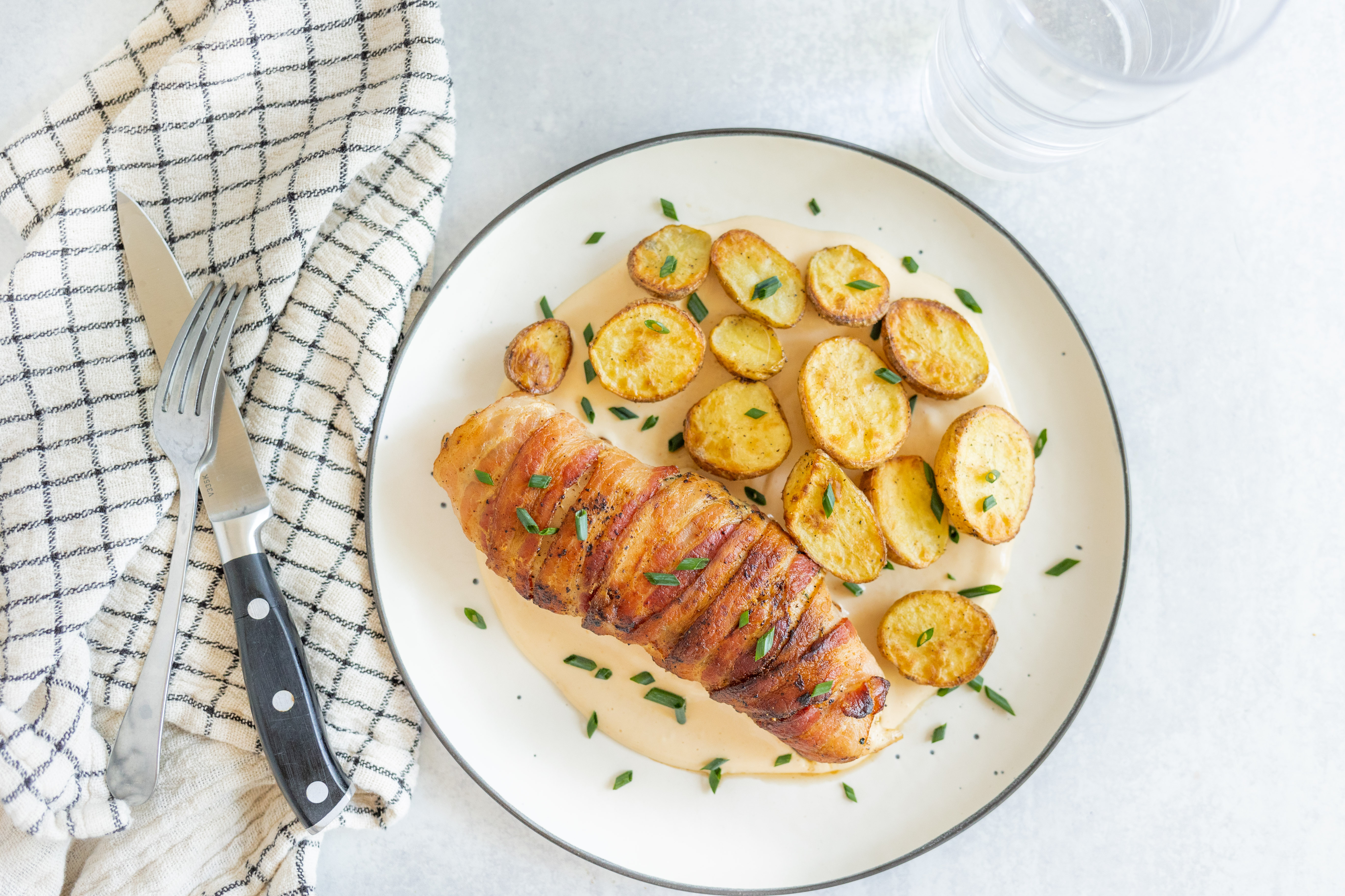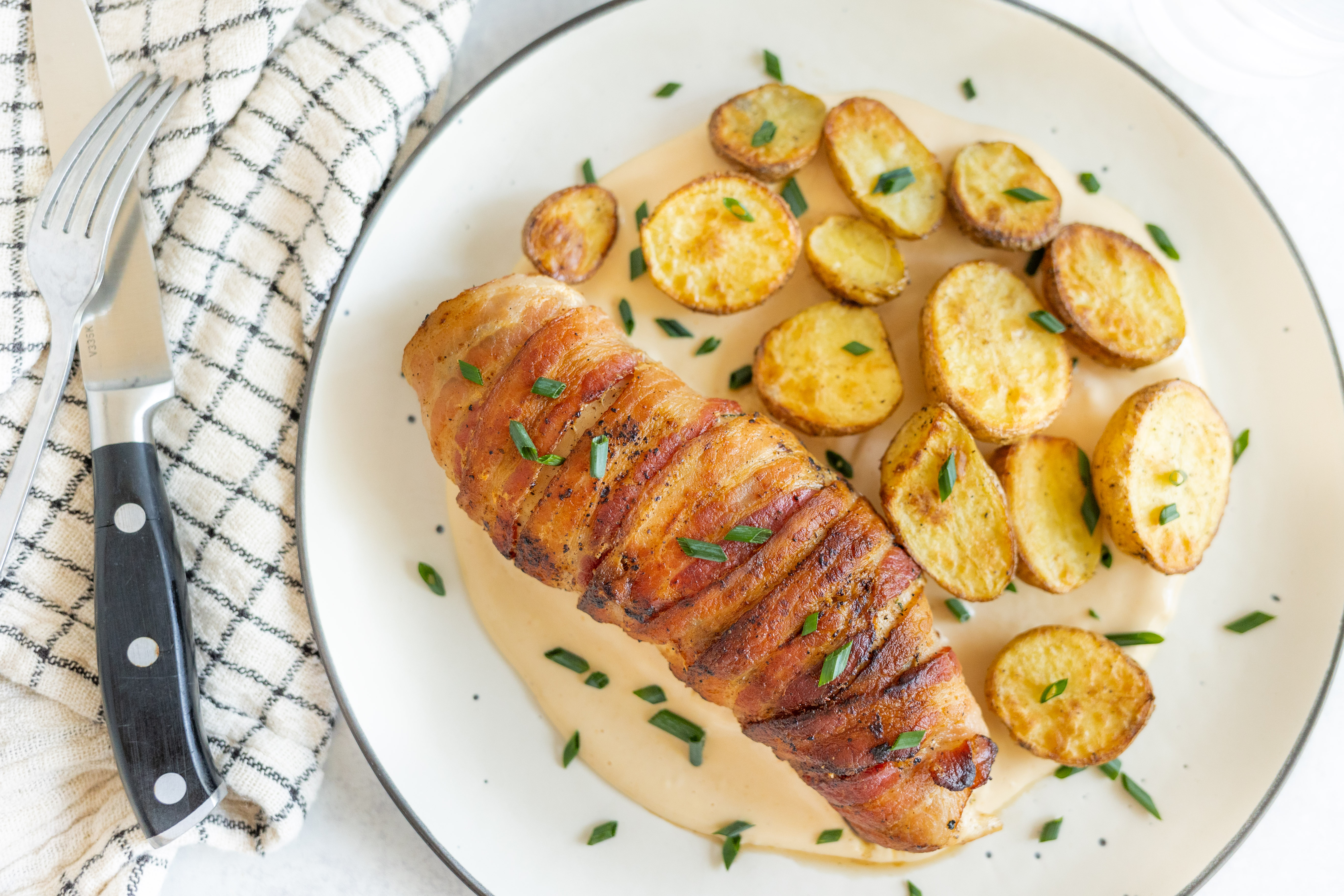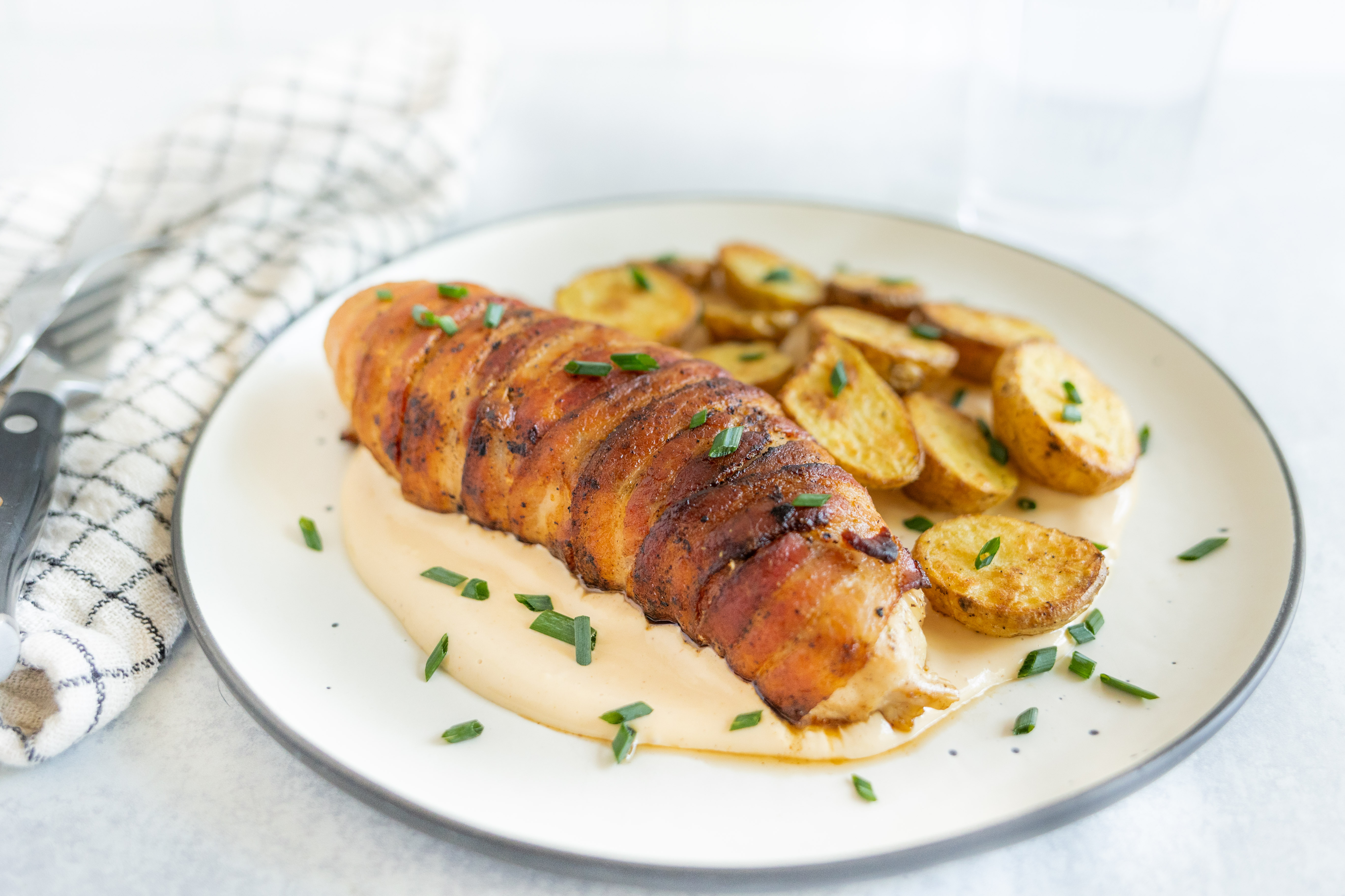 It doesn't get more addictive than this! Crack Bacon Chicken isn't just some super-flavorful, beautifully seasoned, extra-juicy chicken; it's all of that plus it's wrapped in crispy bacon! To be honest, normal breading is going to look very bland in comparison to this Crack Bacon Chicken! Plus, it comes with homemade oven fries and a homemade dipping sauce. Trust us, you'll be hooked after just one bite!