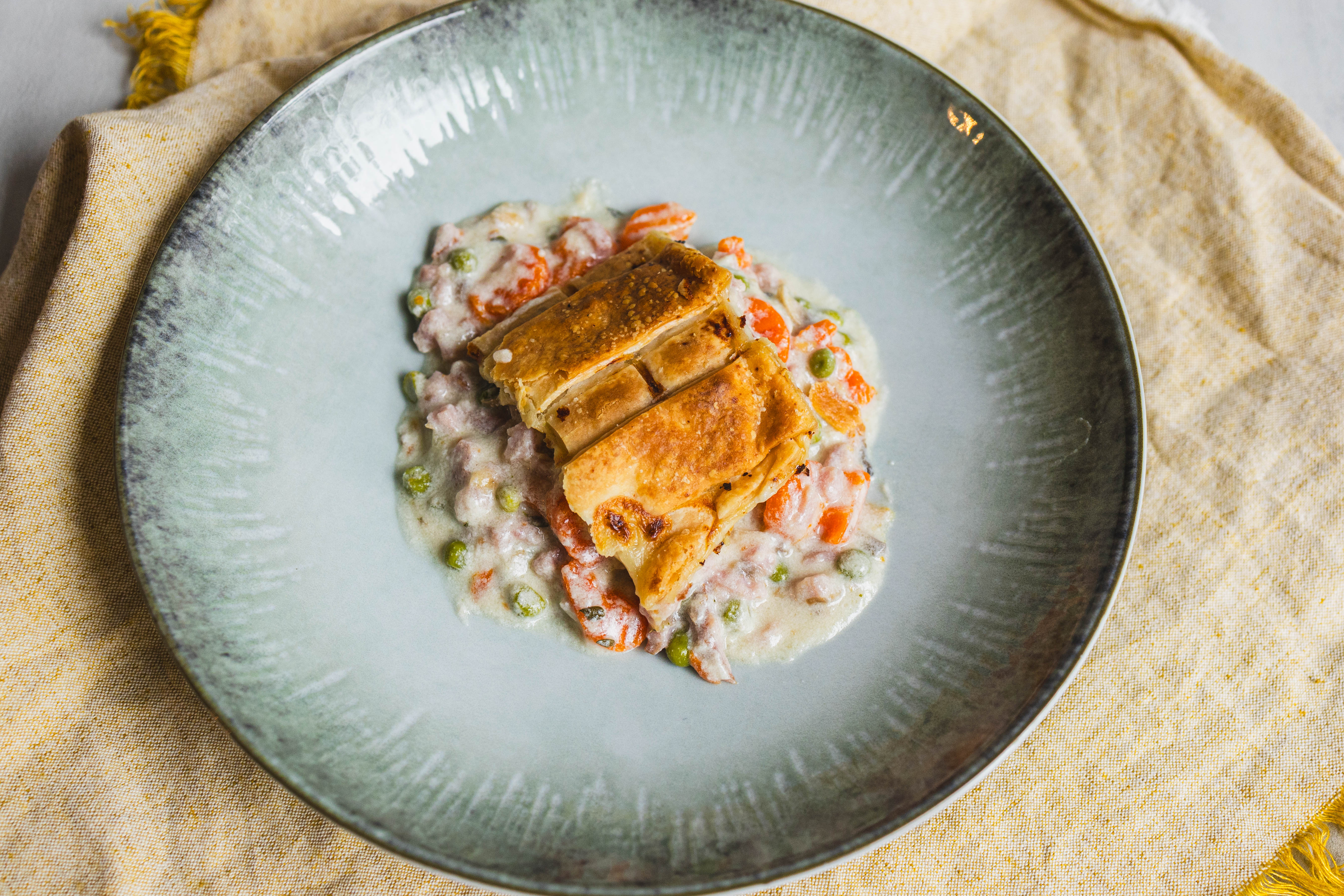 Step 9 -Arrange the dough strips in a lattice design over the ham mixture.