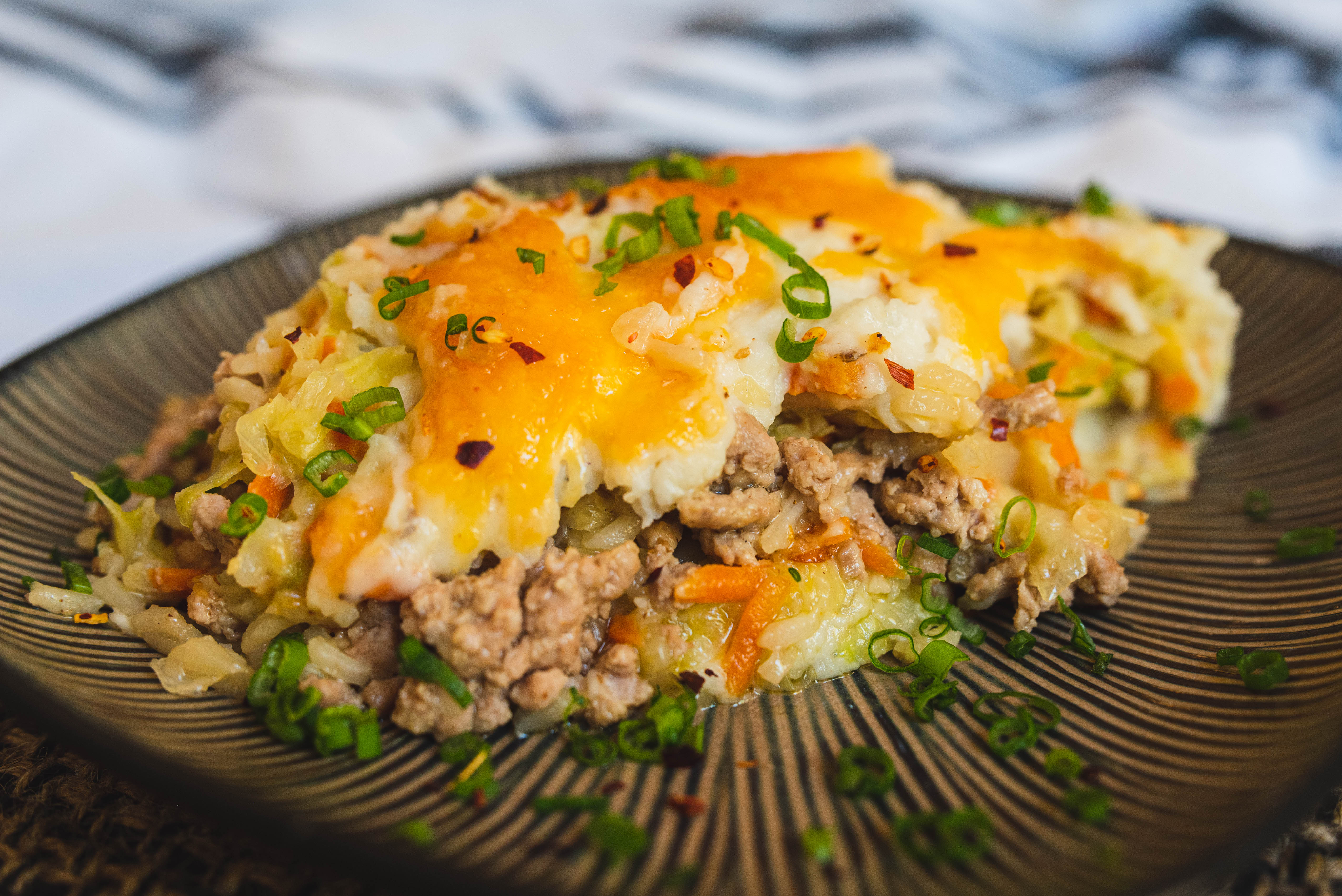 After days and days of watering, tending to, and caring for your little cabbage, it's finally time to harvest it! And what better way to celebrate all your hard work than by making your crispy, green, garden-fresh ball the star of your dinner dish?! My Little Cabbage Pie does just that in the most delicious way! All those long hours turn out to be so worth it, as you pile a creamy layer of cheesy mashed potatoes on top of a veggie mixture featuring your beloved cabbage. All of that lies on a bed of flavorful pork and rice to create quite the feast! Yum, yum, yum! Let's do it again next year so we can savor the fresh flavor of My Little Cabbage Pie again!