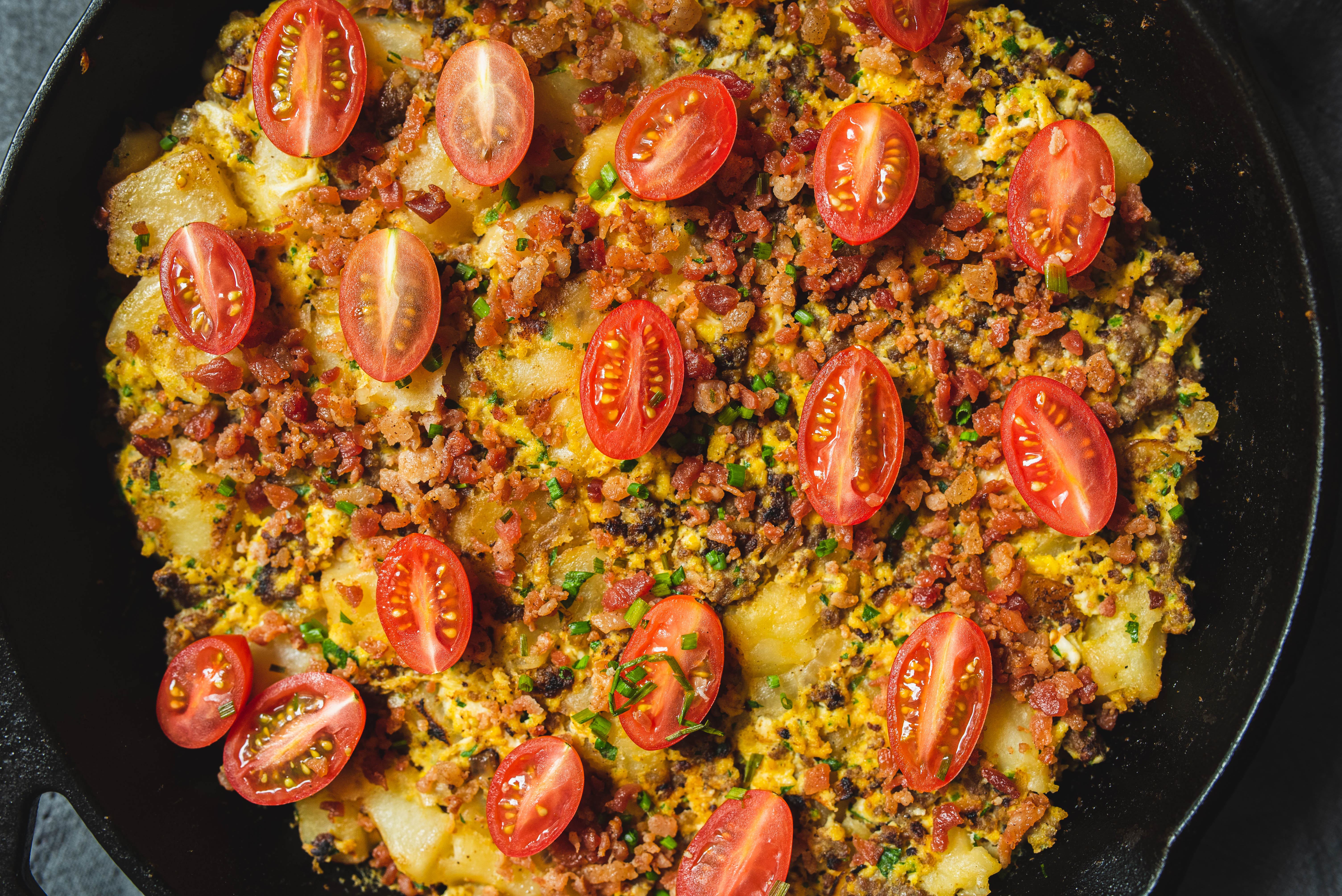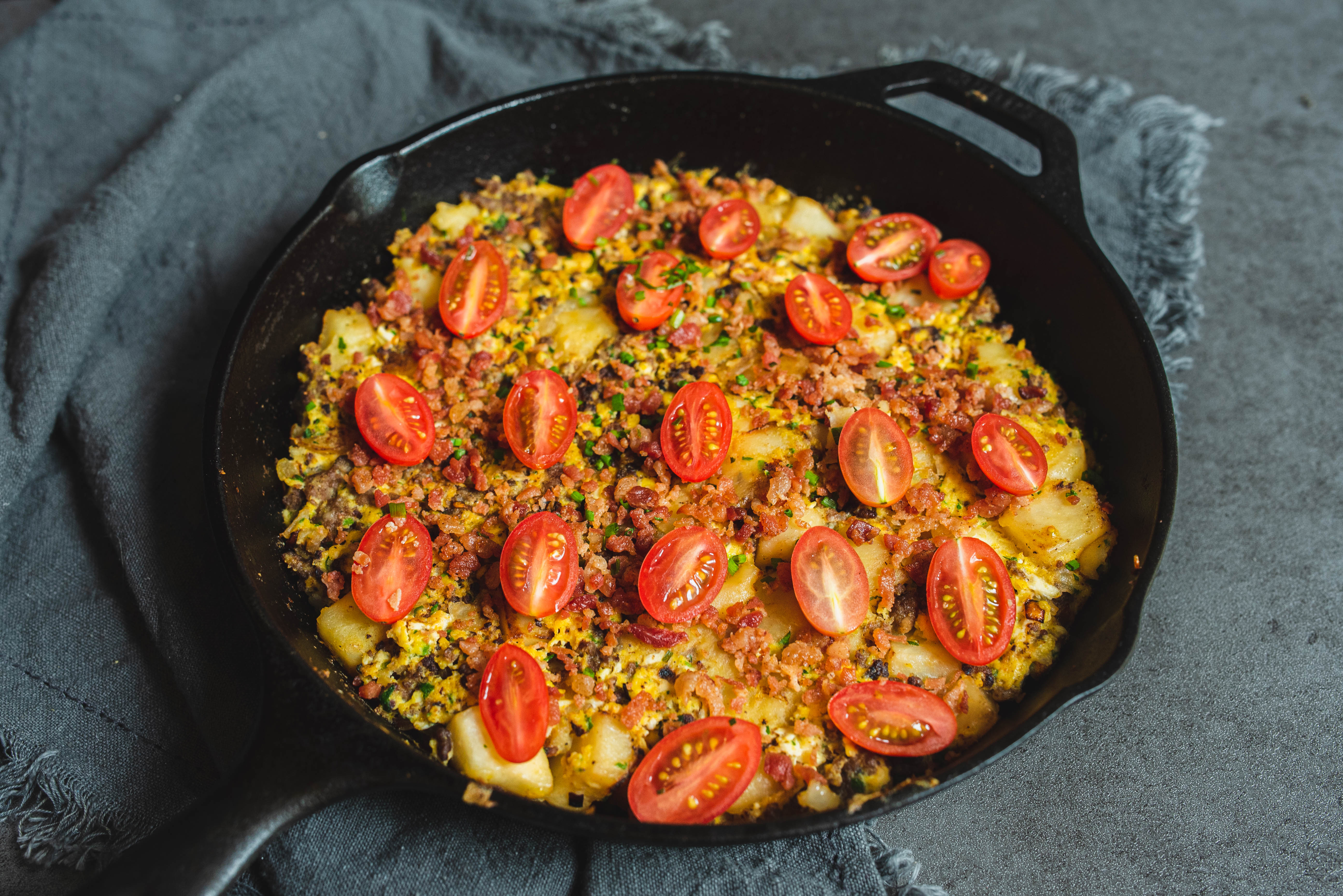 Ya know? Sometimes you just have to eat breakfast for dinner. And if it were up to us, it'd happen a lot more often than it does. Especially when Supper Eggs can be served up! We start drooling just thinking about this hearty breakfast (for dinner) skillet that's loaded with spicy sausage, fluffy eggs, crispy bacon, crunchy hash brown potatoes, and melty cheese. You're guaranteed to have sweet dreams after chowing down on some Supper Eggs. And then tomorrow morning you can do it all over again (at whatever time you want)! YUM!